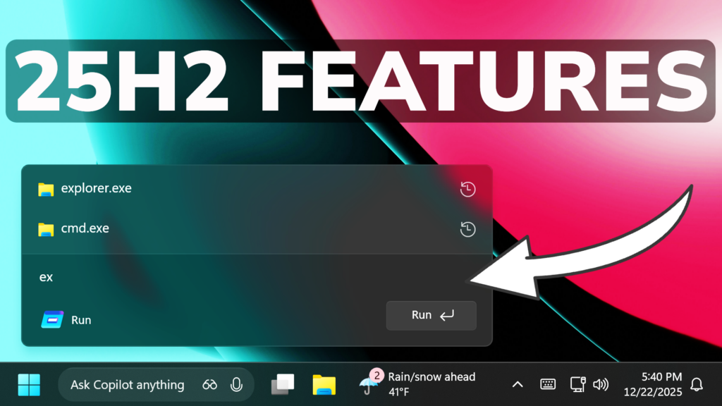 New Windows 11 25H2 Features – New Modern Run Box, New Dialogs and more (How to Enable)