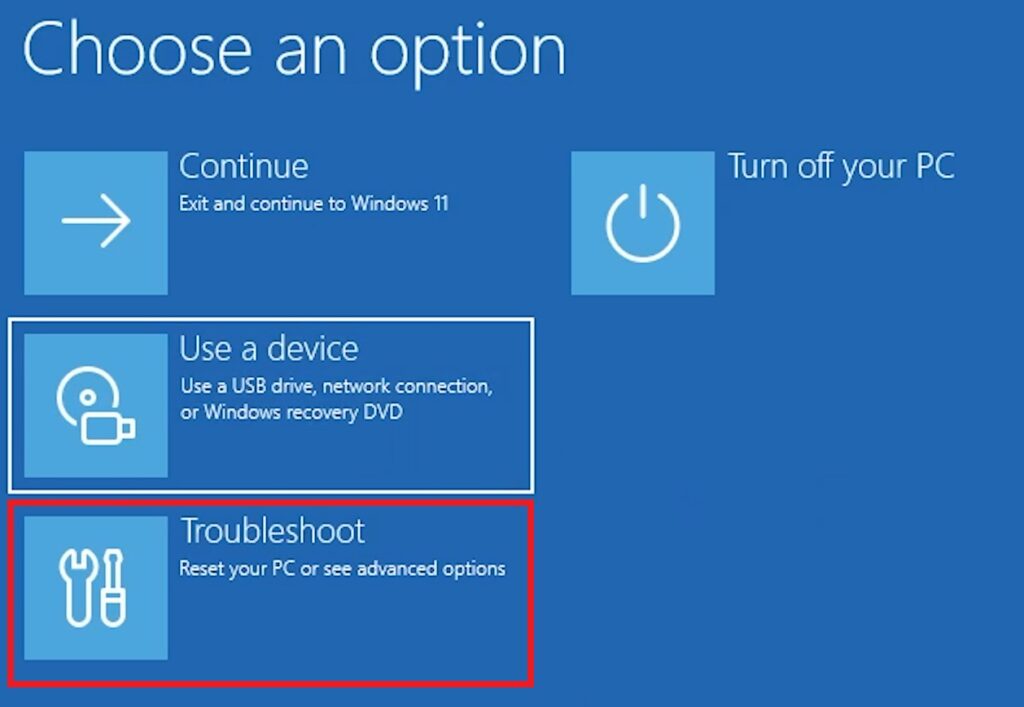 Once you’re in Recovery Mode, make sure you click on Troubleshoot.