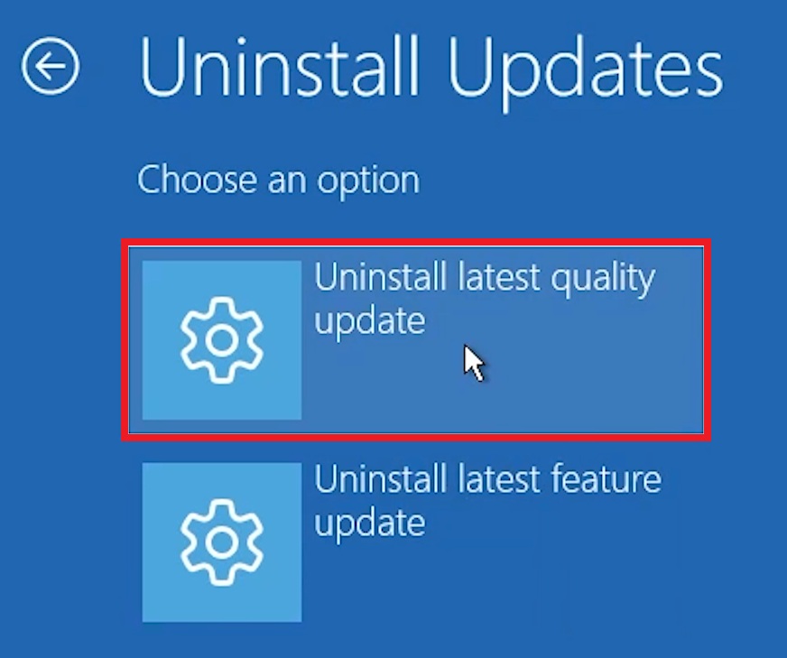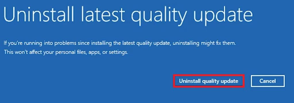 Then, you will need to click on Uninstall latest quality update.