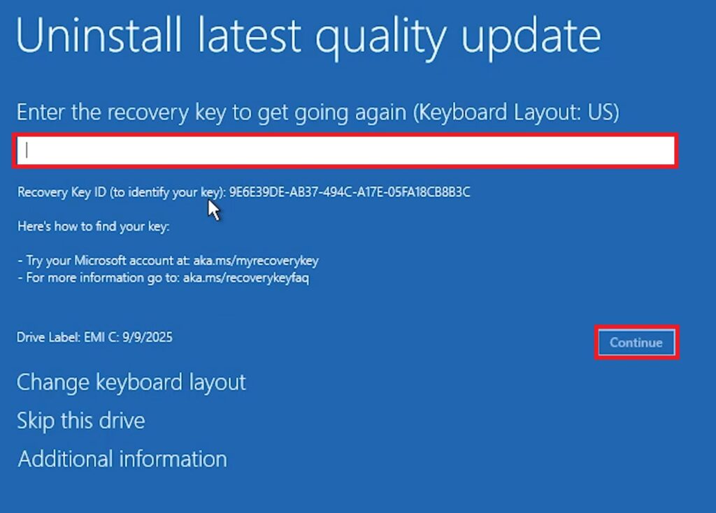 If you have BitLocker enabled, you will need to enter the key, or just click on Skip this drive.