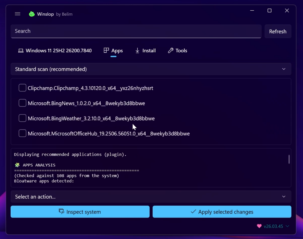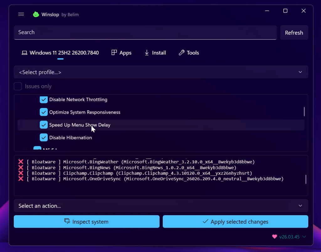 The App has different sections that will help you remove the “slop” from Windows 11.