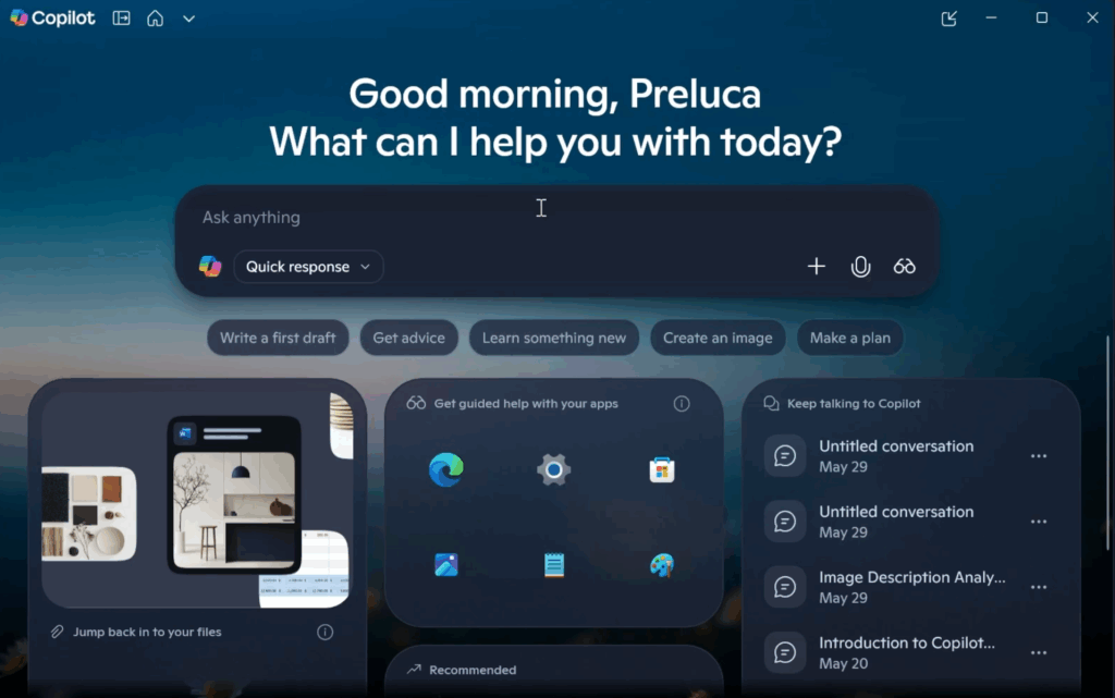 Microsoft has also redesigned the Copilot App Homepage, with New and Useful Information, such as Recent Chats and more.