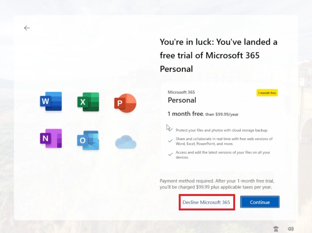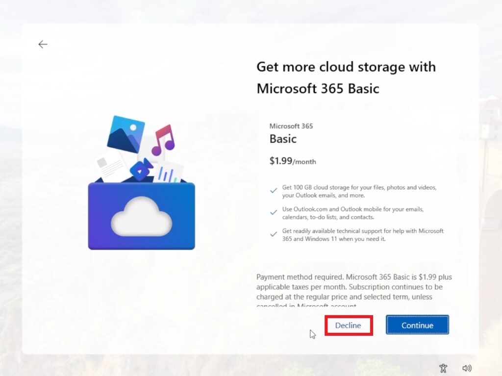 Decline Microsoft 365 Basic if you’re not interested in this product.